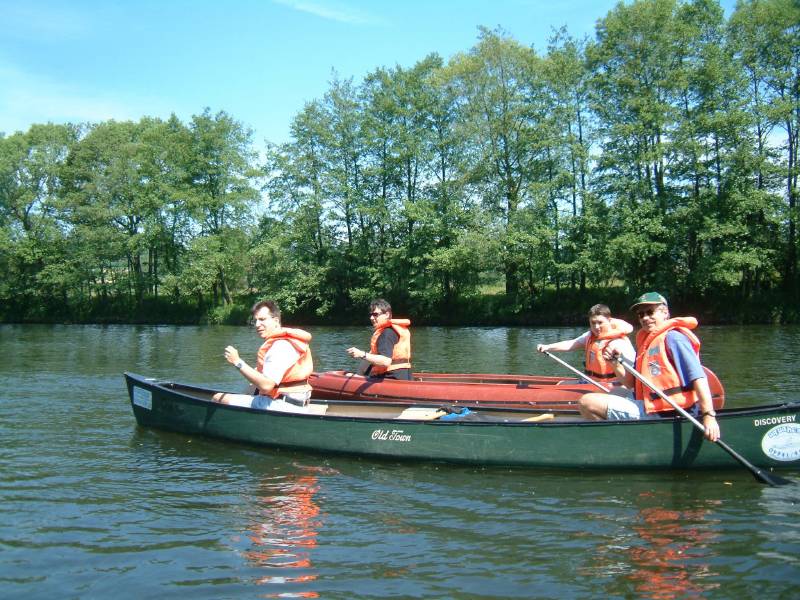 Hier demonstrieren wir Formationspaddeln in breiter Staffelung.