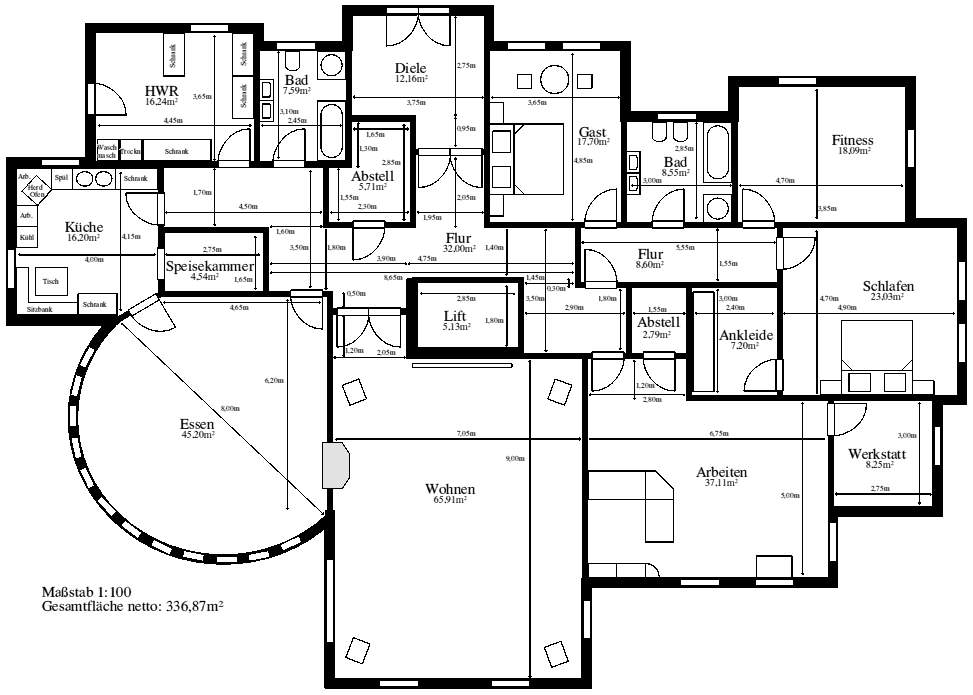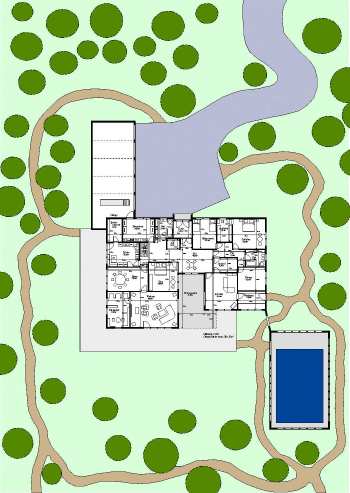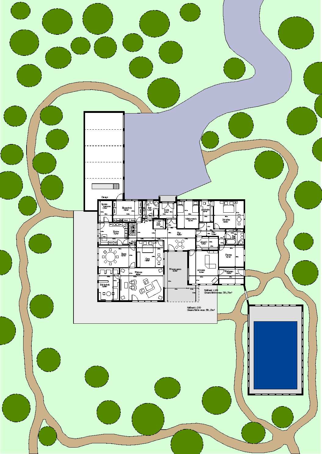 Entwurf 2, ebenerdig, verwinkelte Anordnung |