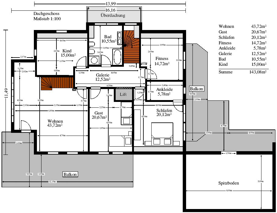 Entwurf 4, Dachgeschoß |